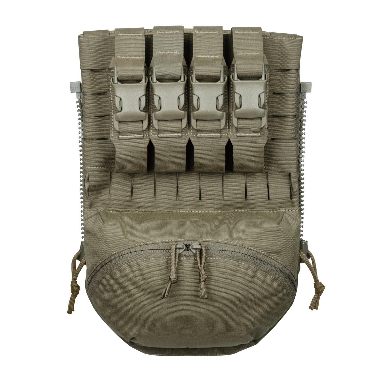 Hlavní oddíl poskytuje dostatek místa na nezbytnosti i hydratační vak. Přední plochá kapsa na zip pojme drobnosti, které potřebujete mít hned po ruce. Panel tak zastane roli jak úložného batohu, tak nosiče pro základní výstroj, aniž by přetěžoval vaši výstrojovou platformu.